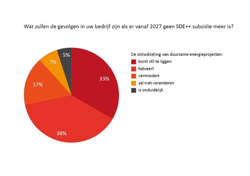 De NVDE inventariseerde de gevolgen van het stoppen van de SDE++-regeling vanaf 2027, voor bedrijven uit haar achterban. Ook bij de NVDE aangesloten brancheorganisaties en VNO-NCW deelden de enquête met hun leden. De NVDE interviewde ook een achttal bedrijven die hun energieprojecten zien sneuvelen door het stoppen van de subsidie.