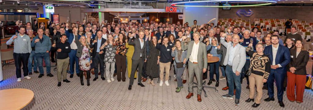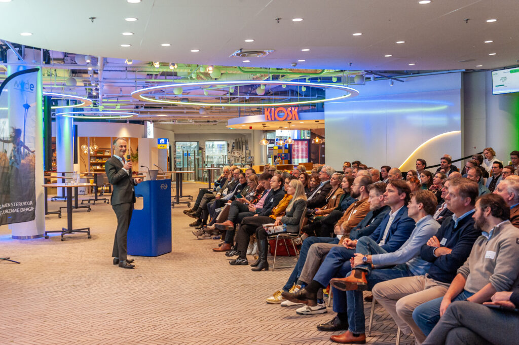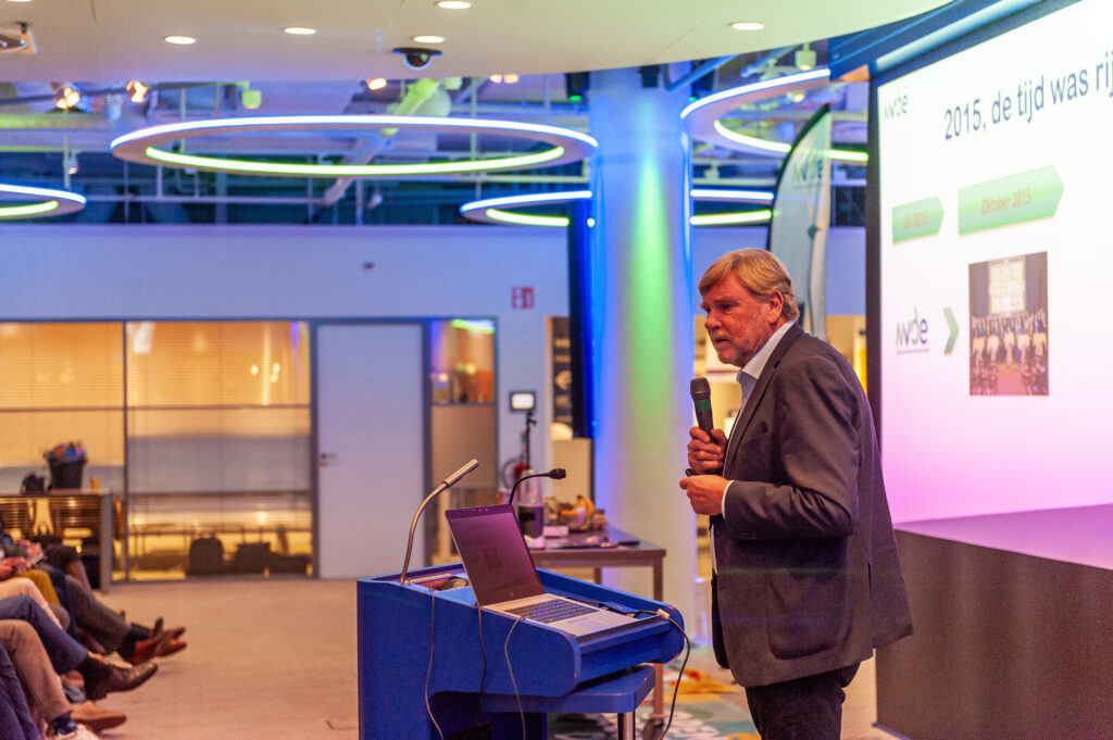 De Nederlandse Vereniging Duurzame Energie (NVDE) bestaat tien jaar. Dat vierden we met een symposium bij NVDE-lid NS onder het motto ’tien jaar energieoptimisme’. Sacha Göddeke-Mulder (NS), Mathijs Bouman (journalist en econoom), Faiza Oulahsen (KPMG), Teun Bokhoven (oprichter NVDE), Pierre Wind (topkok) en Olof van der Gaag (voorzitter NVDE) zorgden voor inspiratie, positiviteit, energie en humor. We willen hen, de NS en alle aanwezigen enorm bedanken dat ze er waren om dit feest met ons te vieren. Op naar de volgende tien jaar!