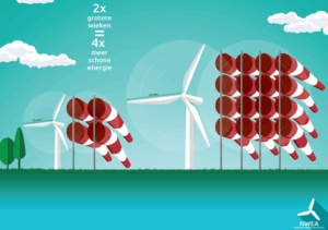 Windturbines worden steeds efficiënter. Ze worden hoger en wekken daardoor veel meer stroom op per turbine. Dat betekent dat er minder turbines nodig zijn om dezelfde hoeveelheid stroom op te wekken. Een grote, moderne turbine kan al wel meer dan vier keer zoveel stroom opwekken als een ouder en kleiner model. Als de wieken twee keer zo groot zijn, verviervoudigt de opbrengst. Ook de hoogte maakt uit. Op grotere hoogte waait het harder.