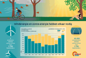 Het heeft meerdere voordelen om op één locatie zonne- en windenergie te combineren. Het is efficiënt ruimtegebruik en zorgt voor lagere kosten en meer efficiënt gebruik van de stroomkabels die de energie moeten ‘afvoeren’ (netinfrastructuur). Dat zit zo: wanneer de zon schijnt, waait het meestal minder en wanneer het hard waait, schijnt de zon meestal minder. Door een combinatie van beide energiebronnen zorg je voor een meer continue voorziening van duurzame energie op één en dezelfde kabel. Zo wordt er optimaal gebruik gemaakt van de infrastructuur en wordt voorkomen dat er op veel verschillende plekken extra kabels en transformatoren moeten worden aangelegd.